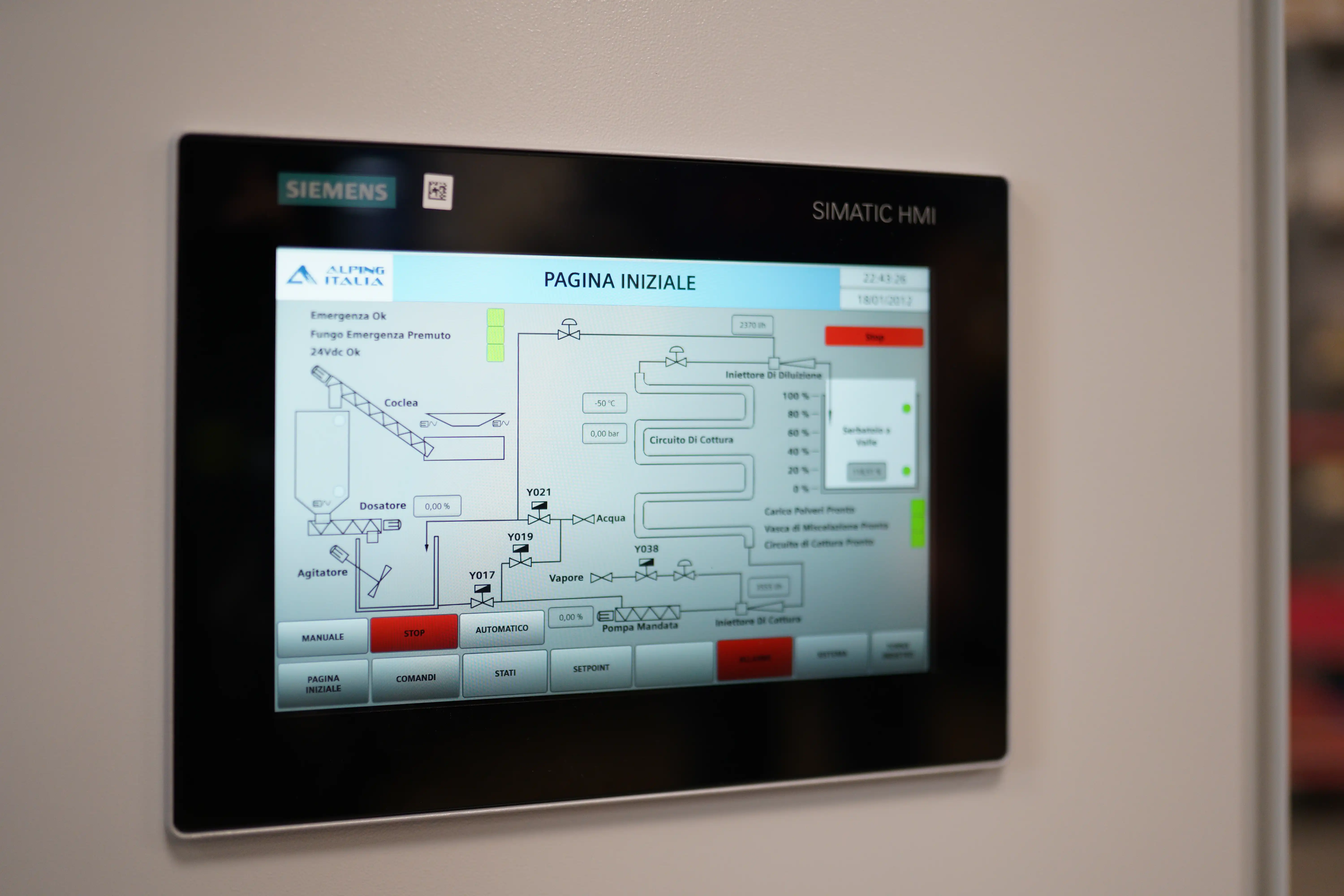 Alping Italia Srl offers advanced top-level automation solutions, specializing in the software development of HMI (Human-Machine Interface) panels and SCADA (Supervisory Control and Data Acquisition) systems. These tools are essential for efficient monitoring and control of industrial processes.